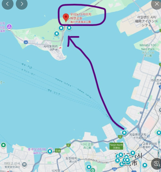 - 하카타항구에서 페리로 이동 30분 ( 항구는 수산물시장)